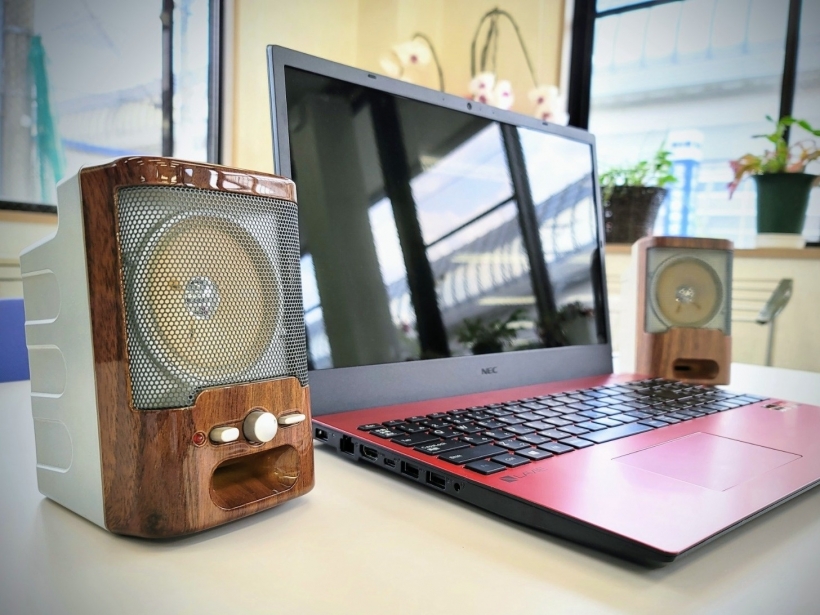 スピーカーに水圧転写で木目柄を入れました。