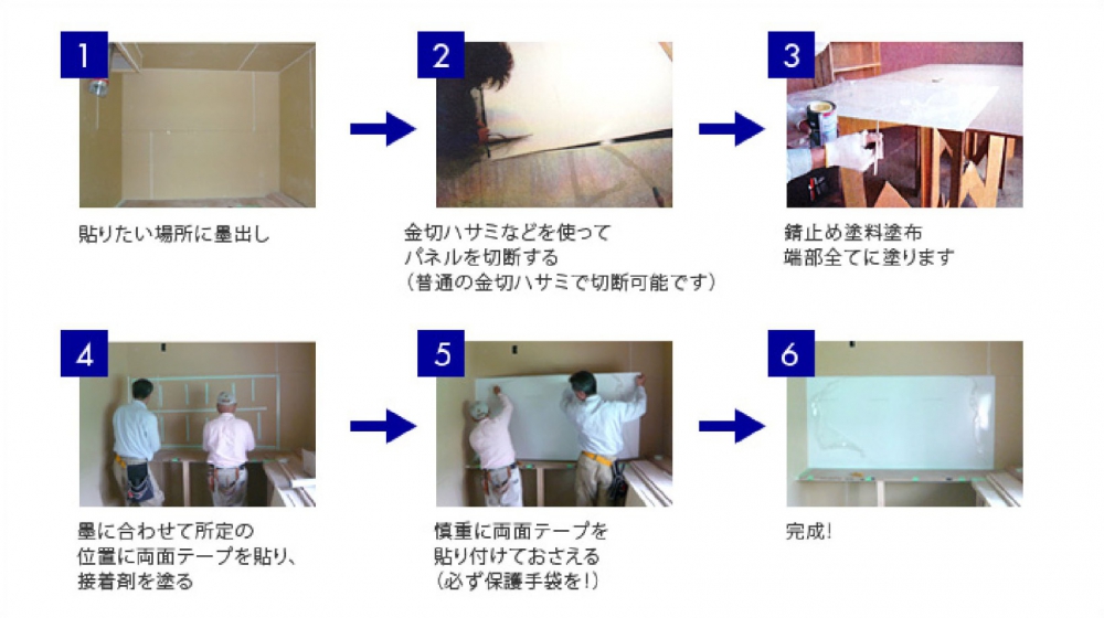 ホーローキッチンパネルは薄板鋼板でできていますので、移動、反転などパネルを動かされる際は、必ず滑り止め付きの軍手、革手 袋を装着の上、「腰折れ」に十分注意してお取り扱いください。